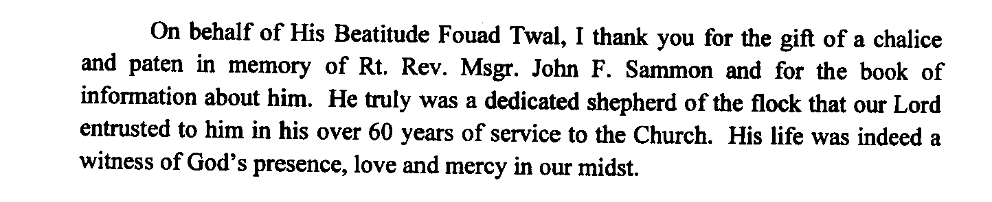 Sir James Heil KHS Presenting Msgr Sammon's Chalice to