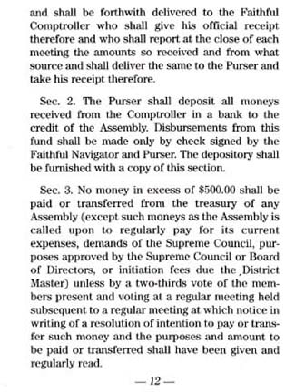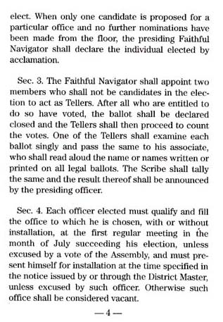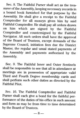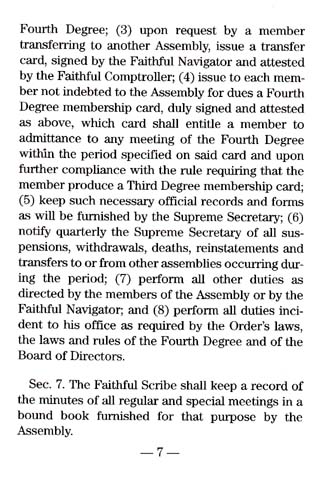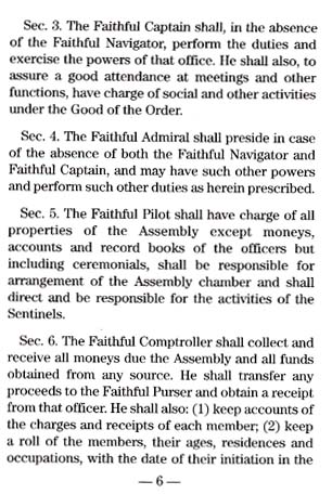 Scribe · responsible for maintaining a true record of all actions of the assembly and its correspondence. Officers Dress Code: All Assembly Officers shall wear tuxedo and baldric to all regular meetings during the year except the months of June thru September. The Navigator should wear dress shirt and tie for June thru September. Dress code for Christmas Dinner is suit or sport coat. Officers Commitment: Moving thru the chairs is a SEVEN year commitment.
