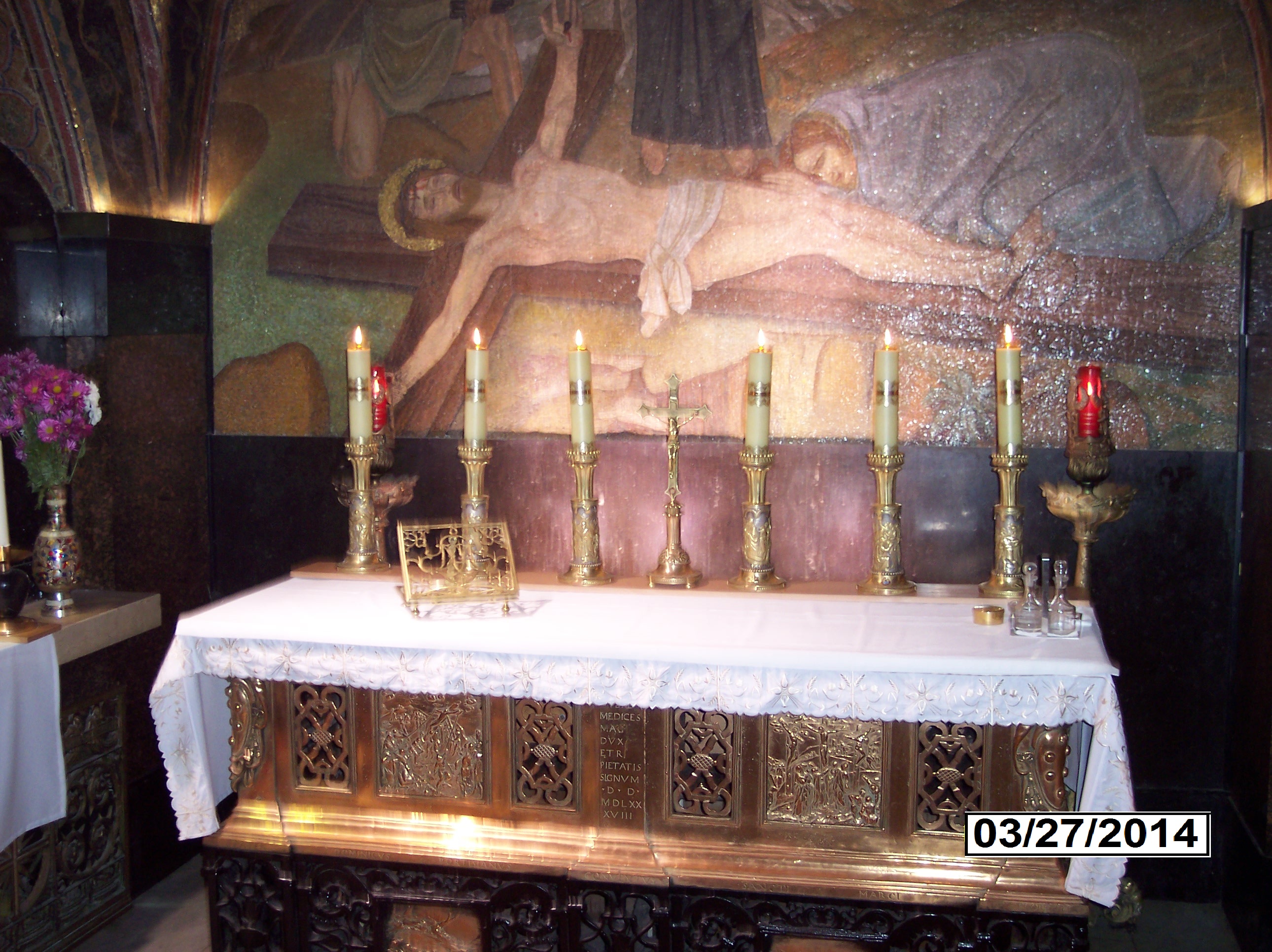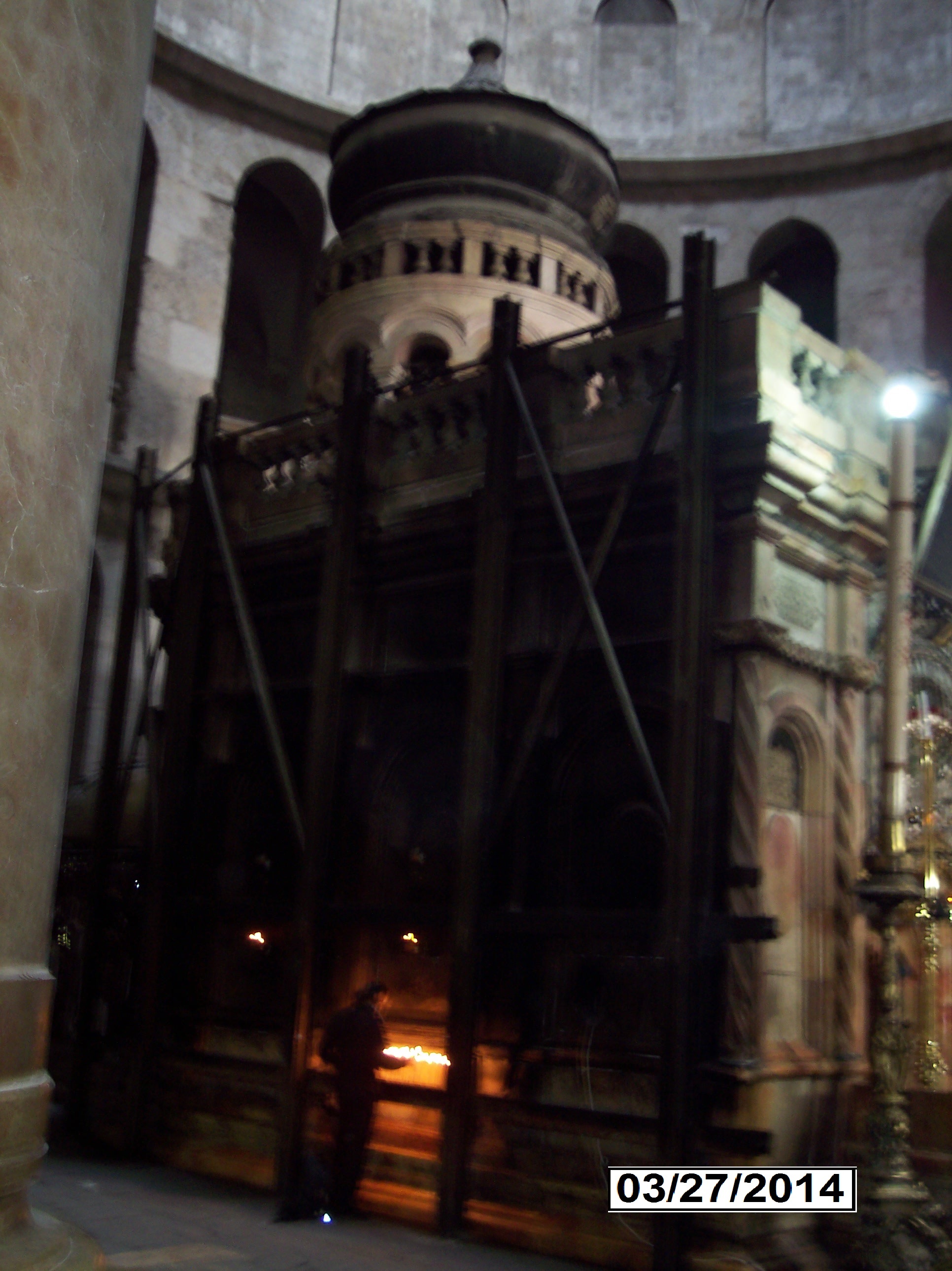 The Church of the Holy Sepulchre; also called the Church of the Resurrection or Church of the Anastasis by Eastern Christians; is a church in the Christian Quarter of the Old City of Jerusalem. The church, dating back to at least the fourth century, the two holiest sites in Christianity: the site where Jesus was crucified, at a place known as Calvary or Golgotha, and Jesus's empty tomb, where he was buried and resurrected. The tomb is enclosed by a 19th-century shrine called the Aedicula. |