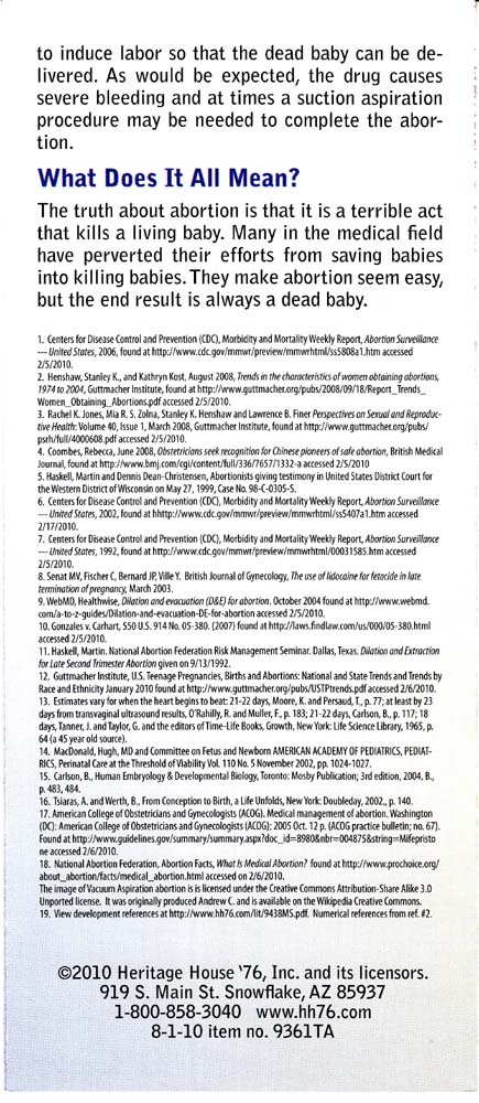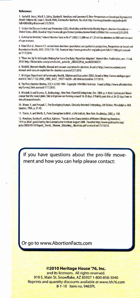 16 | The Truth about Abortion | Heritage House. (800) 858-3040 www.hh76.com |