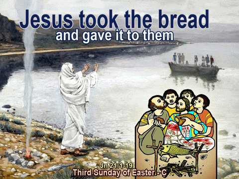 April 4– ANNUNCIATION OF THE LORD [INCARNATION] [transferred from March this year] – [Solemnity] 1st reading Isaiah 7:10-14, 8:10; Psalm 40:7-11; 2nd reading Hebrews 10:4-10; Gospel Luke 1:26-38; God’s sign to Ahaz (Is 7:10-14), a child who will come to do His Will (Ps 40:7-11; Heb 10:4-10), is conceived by the Spirit of a virgin (Luke 1:26-38) For more see Saints Calendar April 10 - Third Sunday of Easter - 1st reading Acts 5:27-32, 40-41; Psalm 30:2,4-6; 2nd reading Revelation 5:11-14; Gospel John 21:1-19 Jesus, The Lamb that was Sacrificed [Rev 4:12] confirms Peter as the Chief Shepherd of His Church [Jn 21:16] giving him the promised protection [Ps 30:2-3] in times of trial [Acts 5:32] |